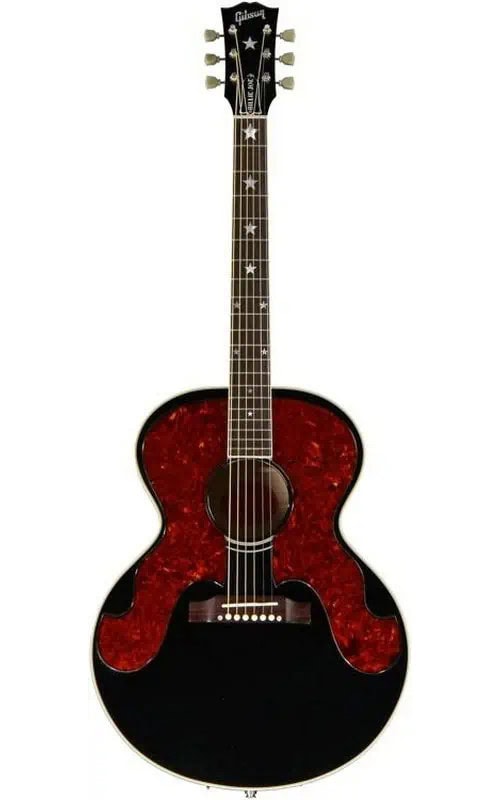 Billie’s main acoustic since 2011 has been the Gibson J-180 signature model, which is based on the Everly Brothers J-180 but with a few key changes. Instead of the original diamond fretboard inlays, it has star inlays, and the bridge is a standard Gibson shape. The pickguards are tortoiseshell rather than black (and there are two of them), and the truss rod cover is engraved with “Billie Joe.”