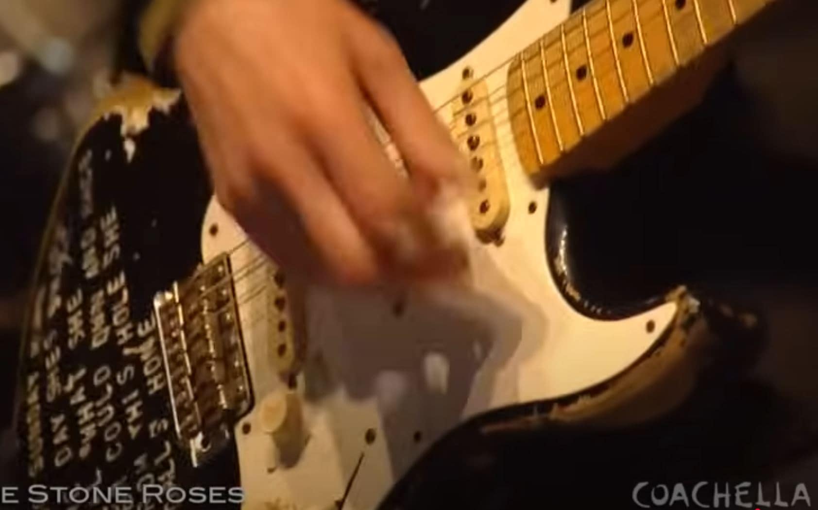This black Fender Stratocaster was one of John Squire’s main guitars during The Stone Roses reunion tour in 2012–2013. He frequently used it on songs like I Wanna Be Adored, Fools Gold, This Is the One, She Bangs the Drums, and I Am the Resurrection.