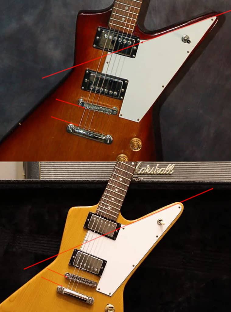 Most sources online seem to think that this guitar was a 1976 Ibanez Destroyer. This hypothesis aligns well with what Warren apparently said, but based on the guitar’s finish, it seems to be unlikely. The 1970s Ibanez Destroyer models were based on the Gibson Korina Explorer, and featured a natural, yellow finish, without the sunburst effect seen on Kurt’s guitar.
