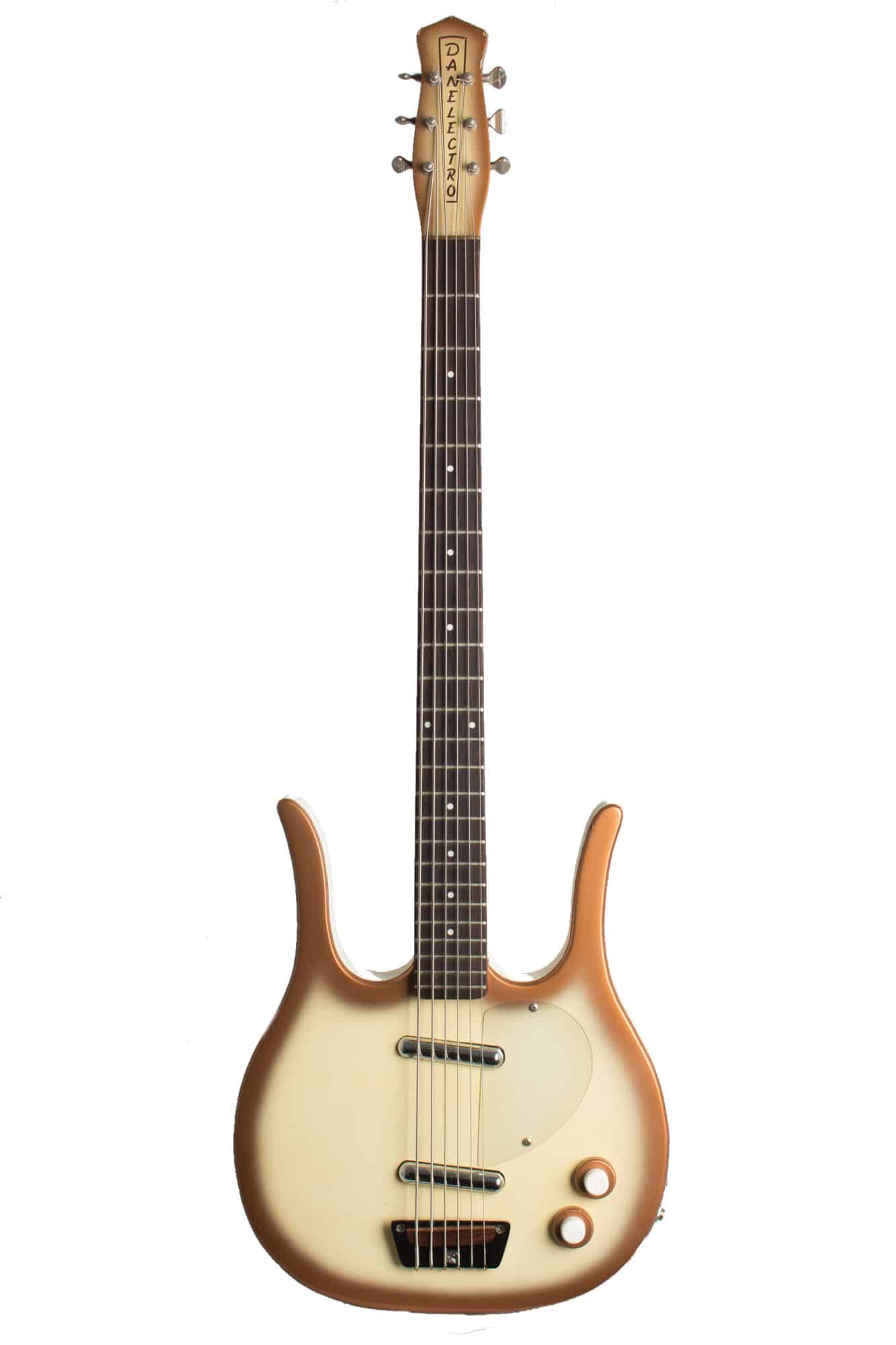 The Danelectro Longhorn that Stevie used was actually a 6-string bass guitar, similar to the better-known Fender Bass VI. It was introduced in 1958, and it featured a masonite and pine body finished in bronze color, a poplar neck with rosewood fingerboard, and two Danelectro “lipstick tube” pickups.